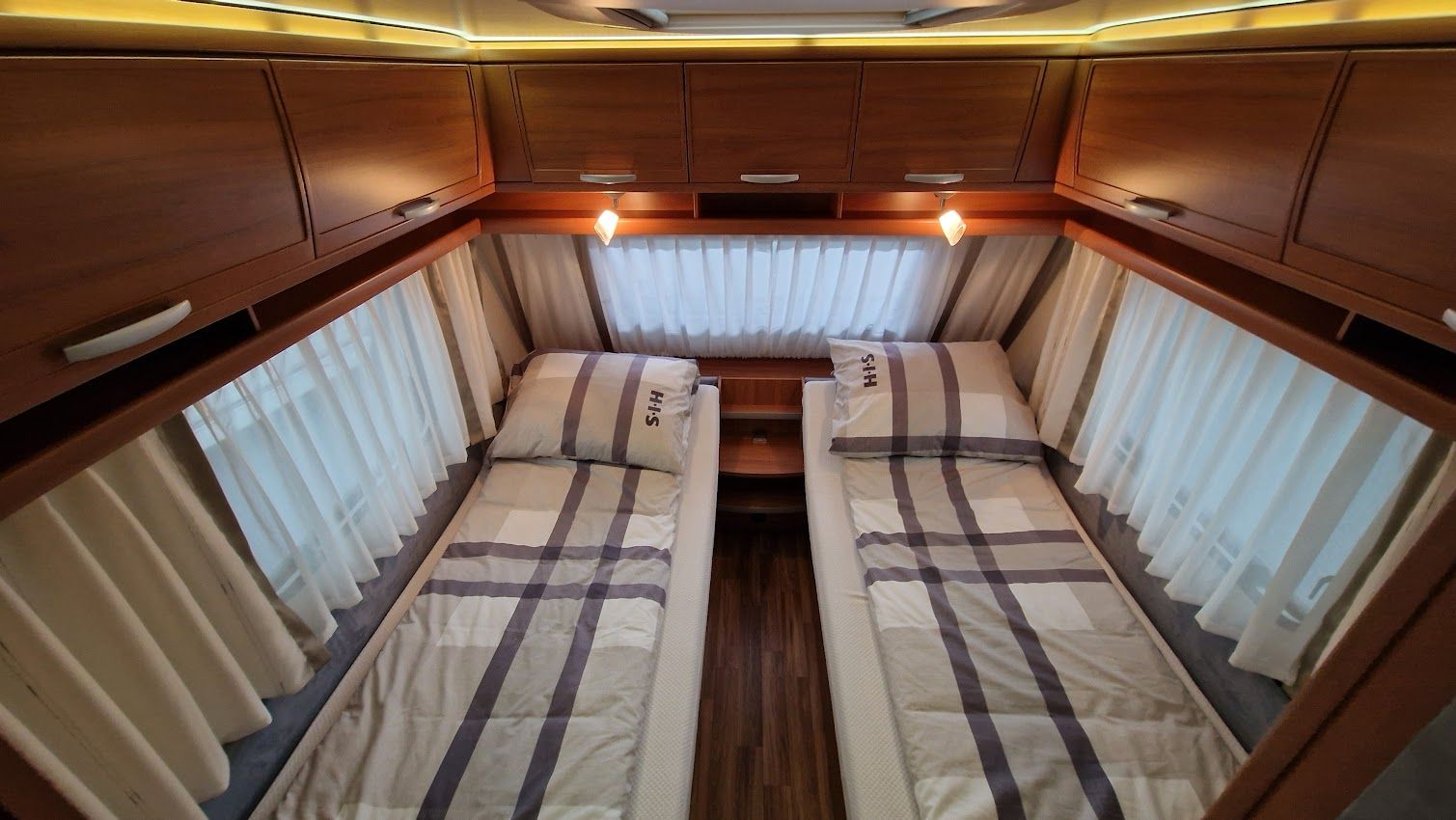 - zwei hochwertige Matratzen mit Lattenrost und verstellbare Kopfteil