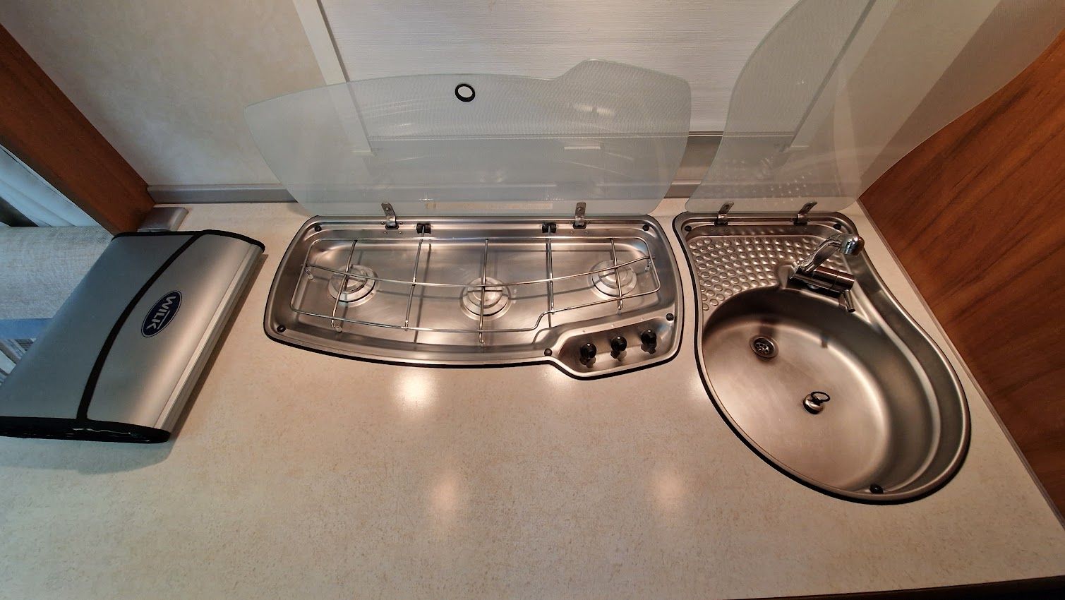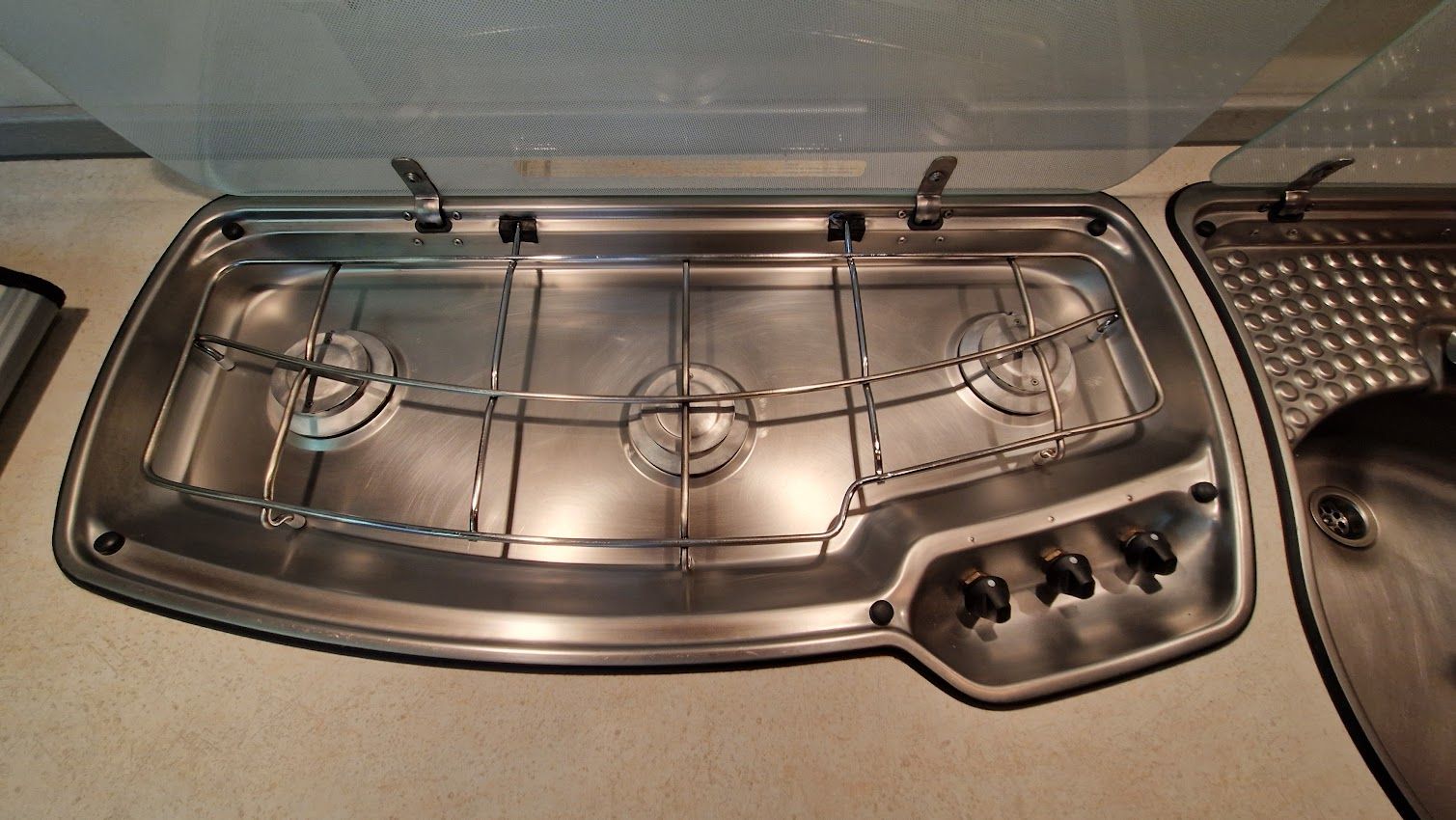 - Edelstahl-3-Flammen-Gasherd mit Glasabdeckung