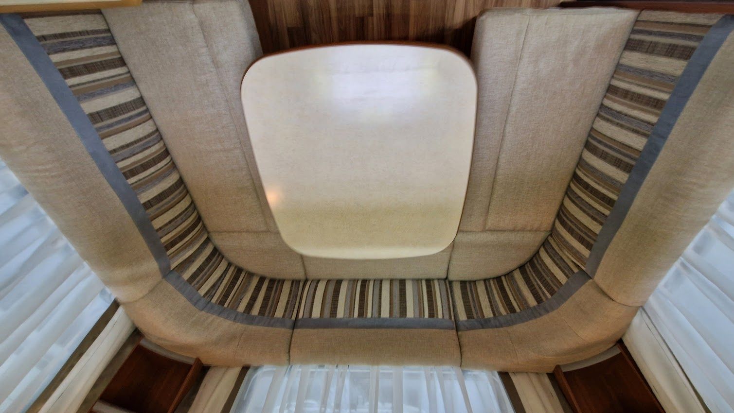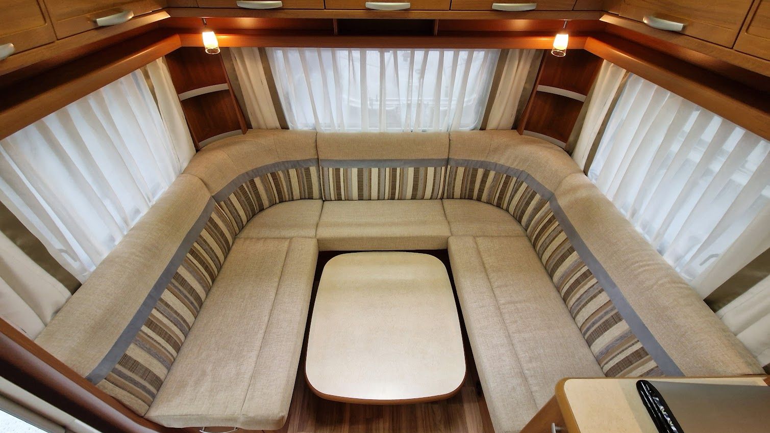 - Sitzgruppe mit Säulentisch bieten eine weitere Schlafmöglichkeit 145 x 210 cm