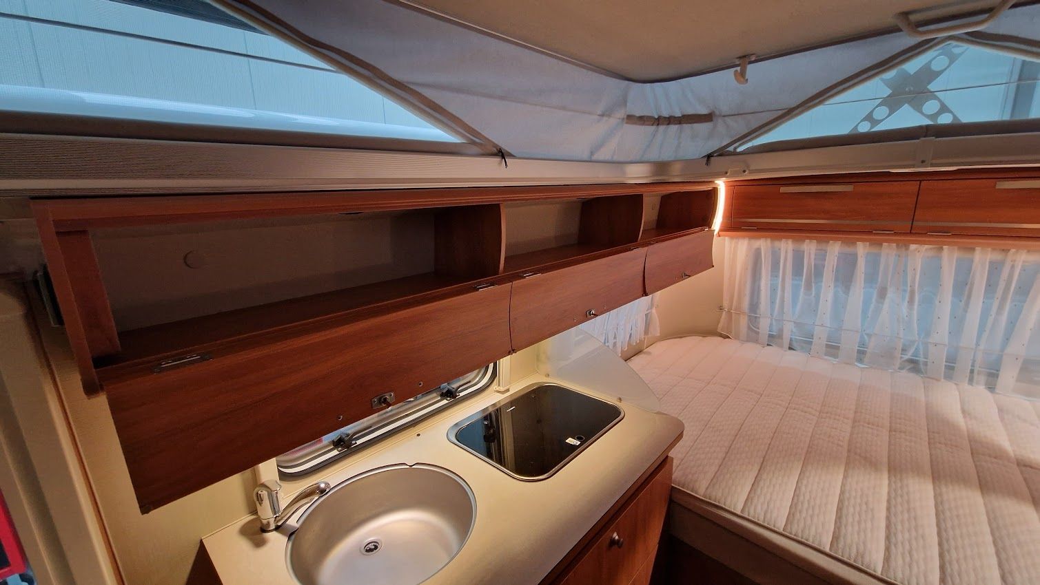 - aufstellbares Fenster mit Verdunkelung und Insektenschutz