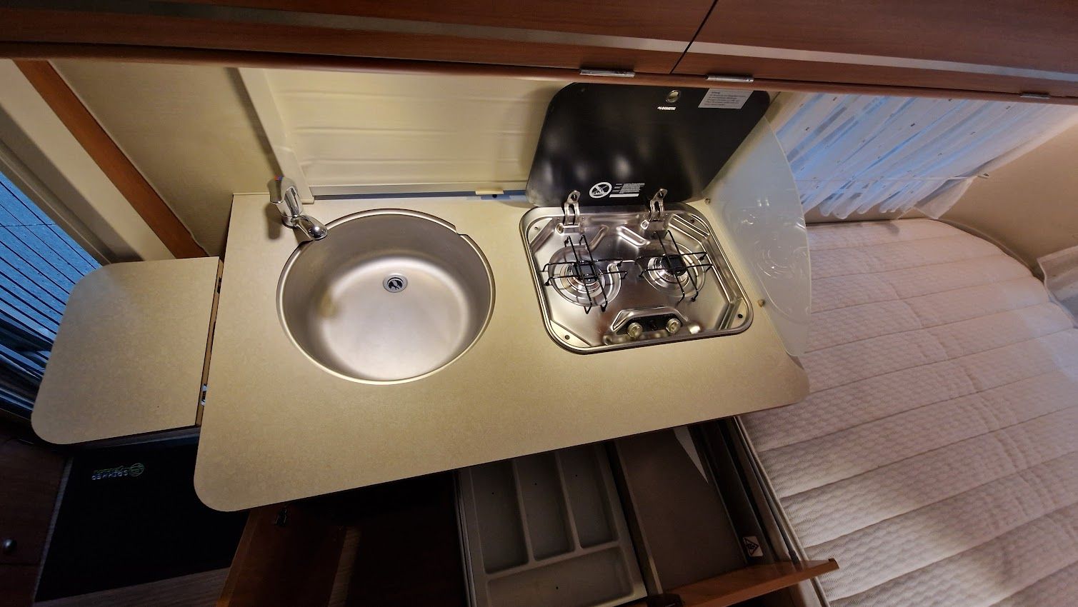 - Großzügiger Stauraum in der Küche dank großer Schubladen und einem Staufach