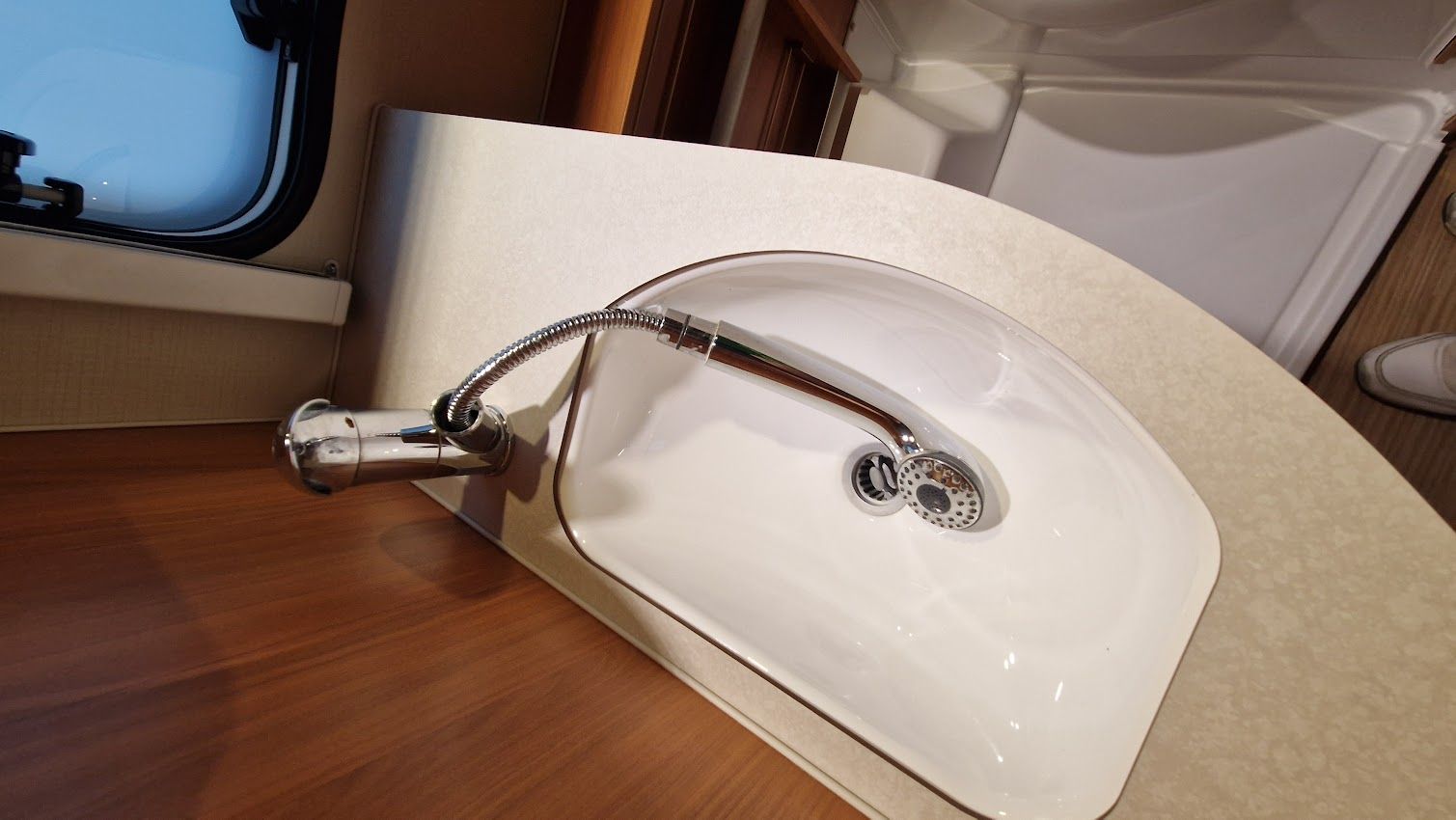 - Waschbecken mit ausziehbarem Wasserhahn fürs Duschen
