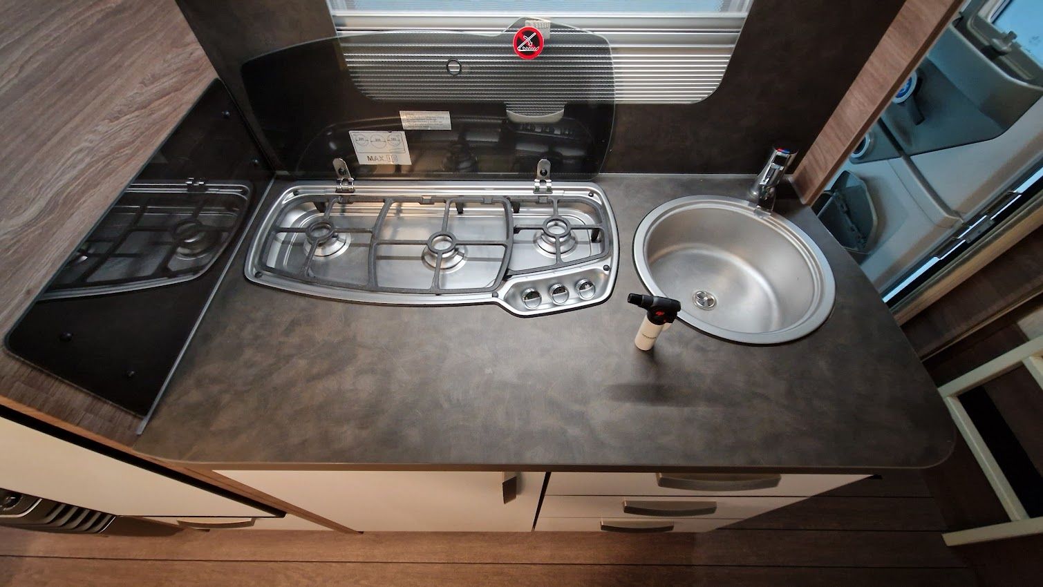 - Edelstahl-3-Flammen-Gasherd mit Glasabdeckung