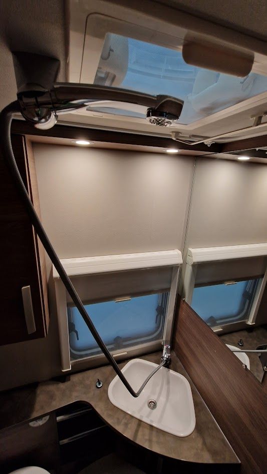 - Waschbecken mit Warmwasser und mit ausziehbarem Duschkopf