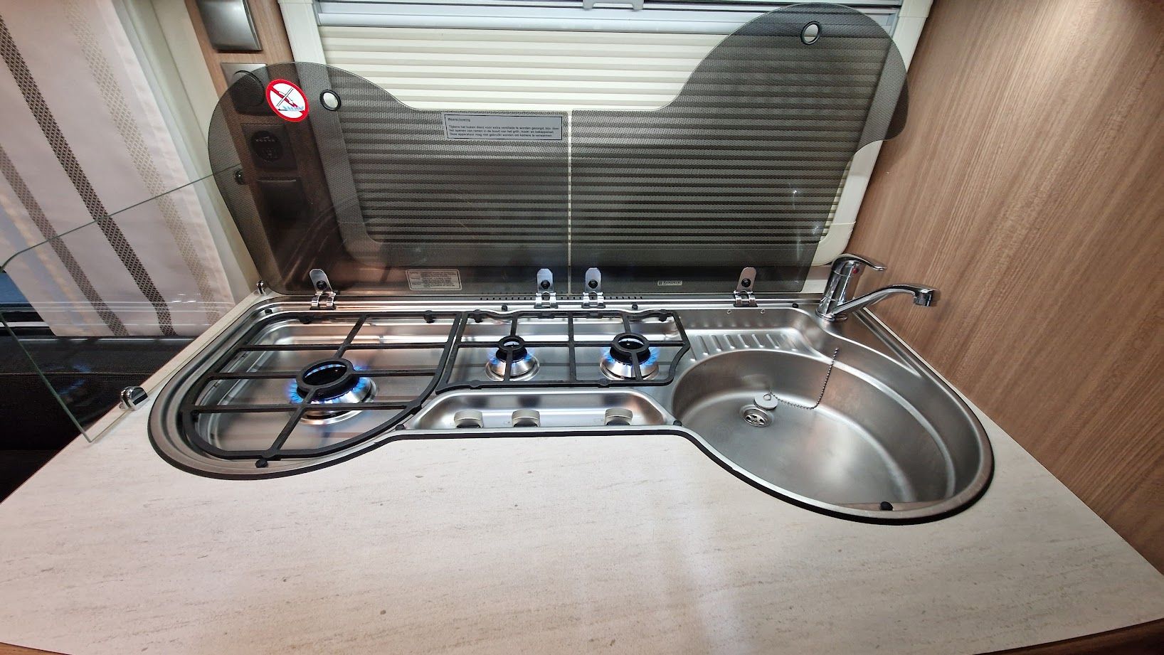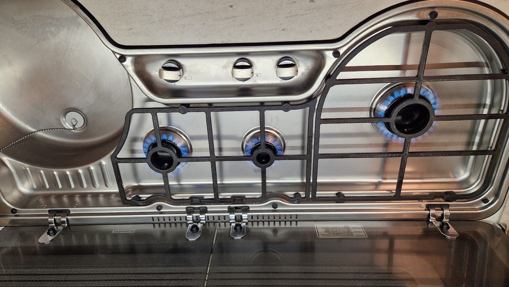 - Edelstahl-3-Flammen-Gasherd mit Glasabdeckung