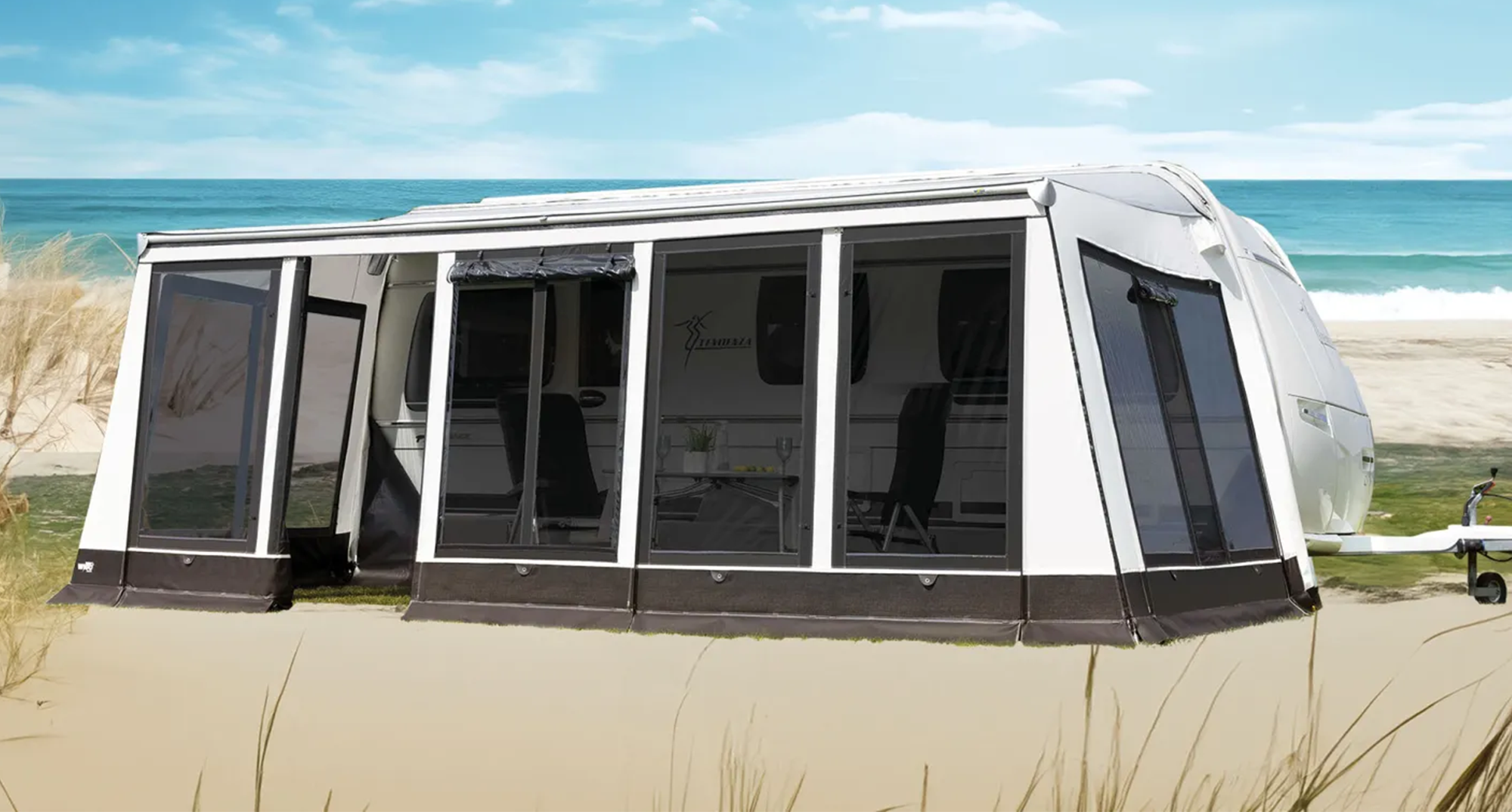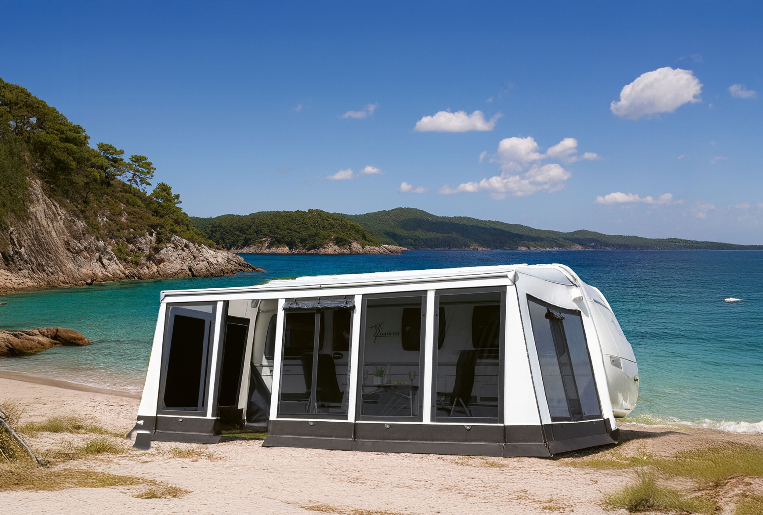 Vario-Ecklösung – gleicht Bugschrägen des Wohnwagens sauber aus